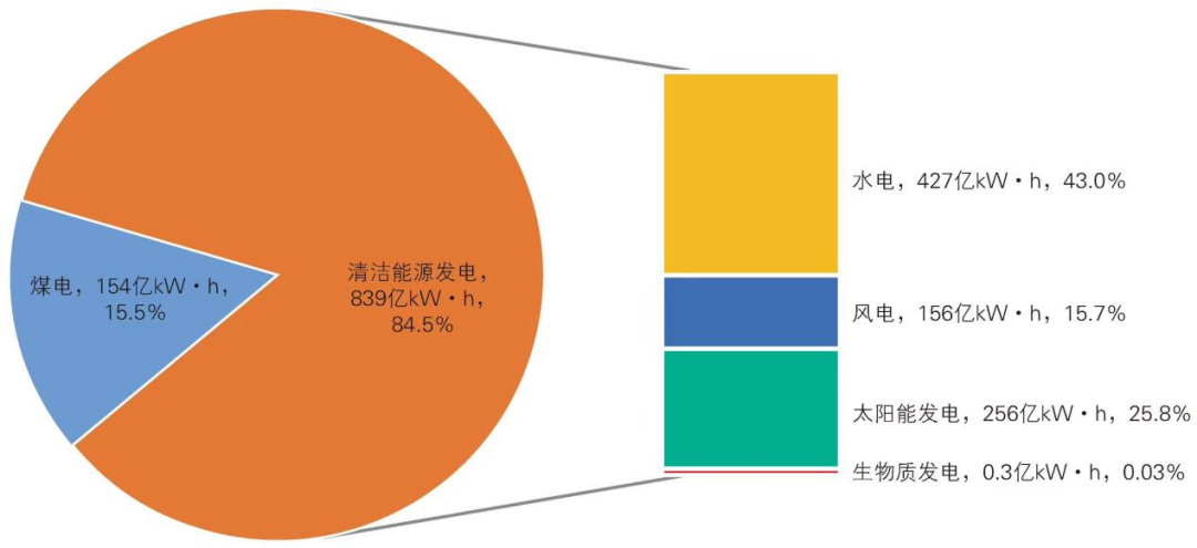清潔能源發(fā)電量呈現(xiàn)“一降三升”特征。2022年,青海省各類電源全口徑總發(fā)電量993億千瓦時(shí)。清潔能源發(fā)電量839億千瓦時(shí),占全部發(fā)電量的84.5%。其中水電發(fā)電量427億千瓦時(shí),占各類電源總發(fā)電量的43.0%,同比降低15.4%,仍是第一大發(fā)電量主體;風(fēng)電發(fā)電量156億千瓦時(shí),占各類電源總發(fā)電量的15.7%,同比增加20%;太陽(yáng)能發(fā)電量256億千瓦時(shí),占各類電源總發(fā)電量的25.8%;同比增加21.5%,生物質(zhì)發(fā)電量0.30億千瓦時(shí),占各類電源總發(fā)電量的0.03%,同比增加30.4%。