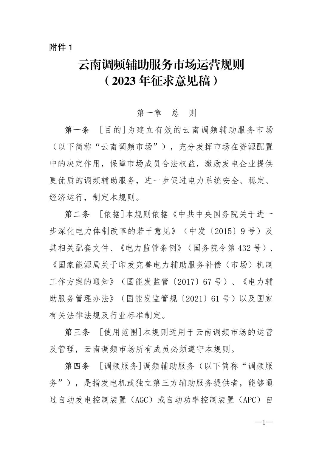 國家能源局云南監(jiān)管辦公室關(guān)于公開征求 《云南調(diào)頻輔助服務(wù)市場運營規(guī)則(2023年征求意見稿)》有關(guān)意見建議的通知