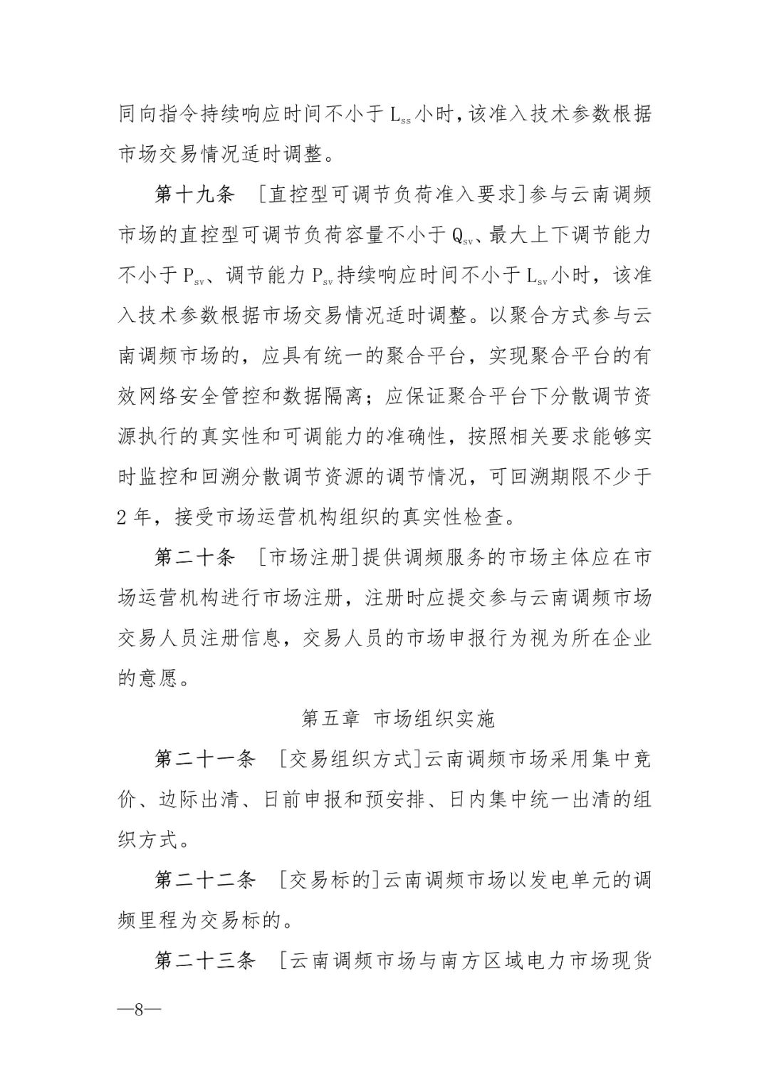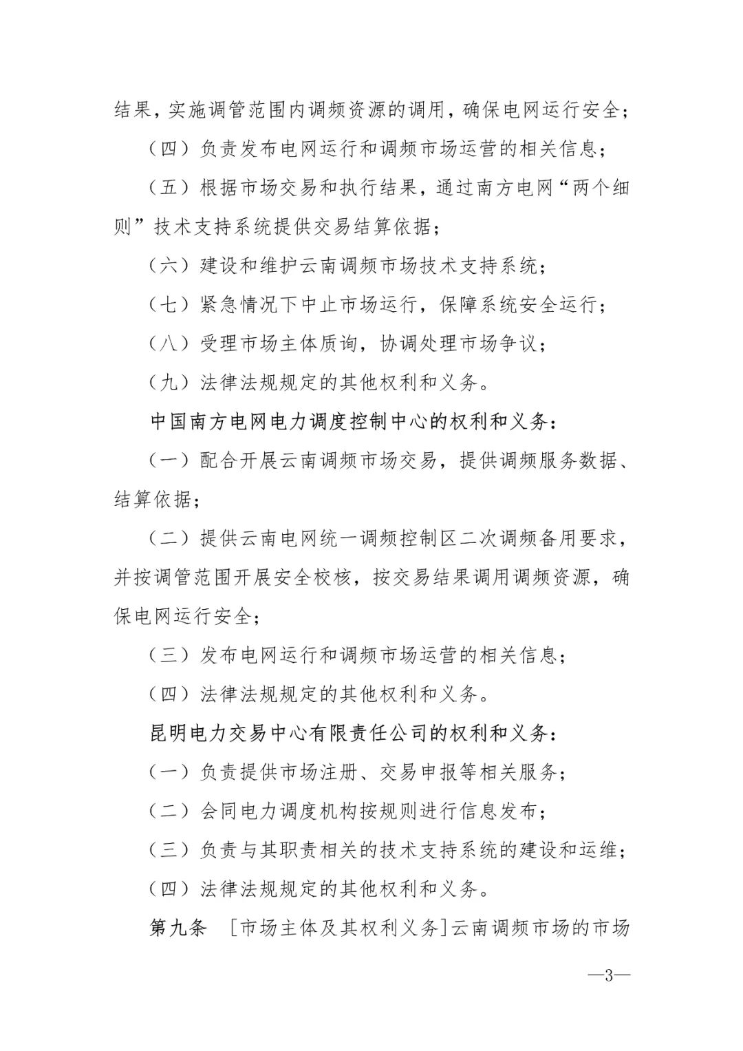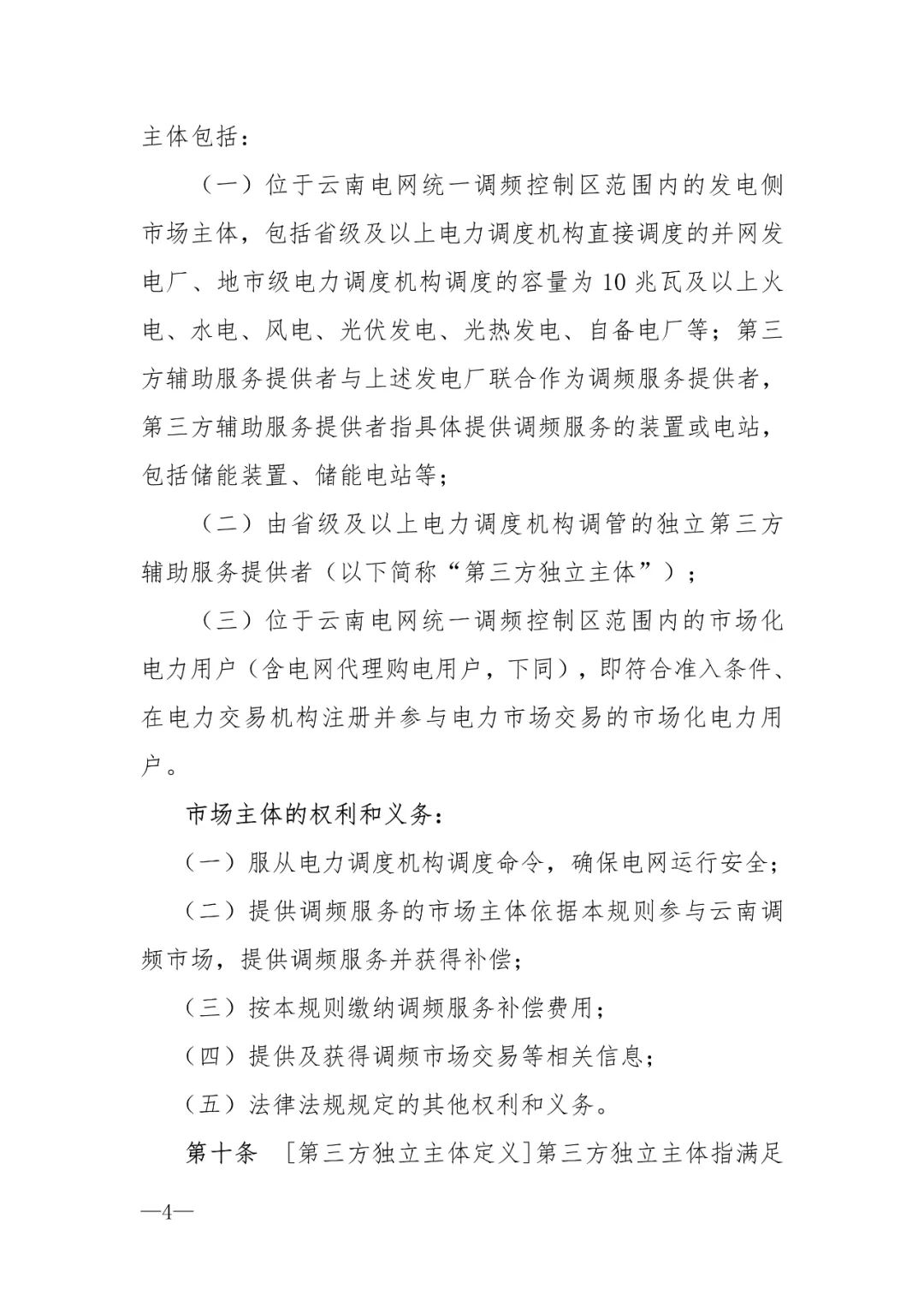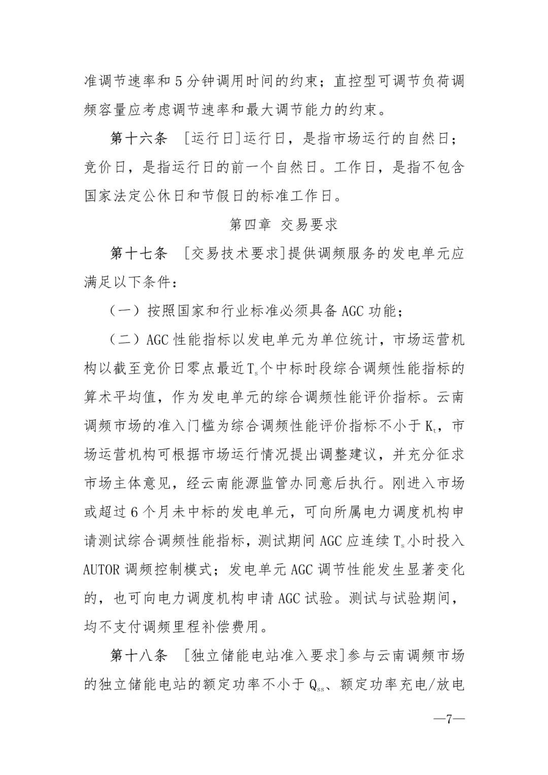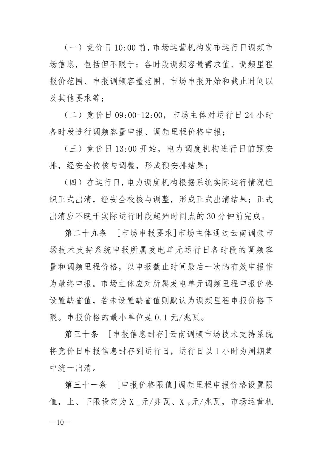 為深入貫徹落實黨中央、國務(wù)院重大決策部署,按照《電力輔助服務(wù)管理辦法》《完善電力輔助服務(wù)補償(市場)機制工作方案》等有關(guān)文件要求,持續(xù)完善電力輔助服務(wù)市場建設(shè),深化用戶參與的電力輔助服務(wù)分擔(dān)共享機制,推動第三方獨立主體參與輔助服務(wù)市場建設(shè),結(jié)合云南調(diào)頻輔助服務(wù)市場結(jié)算試運行及市場主體反饋情況,云南能源監(jiān)管辦組織有關(guān)單位修訂完善了《云南調(diào)頻輔助服務(wù)市場運營規(guī)則》,現(xiàn)向全社會公開征求意見建議。