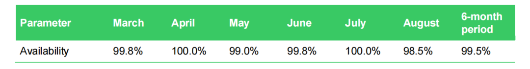 在整個報告期間,GESS的可用性也很高,所有月份記錄的平均>為99%,不低于97.4%(見表9和表10)。