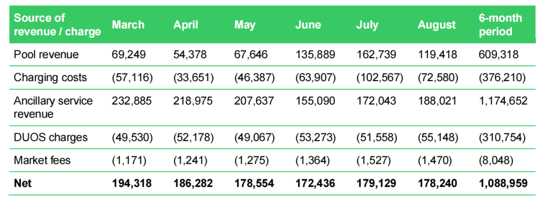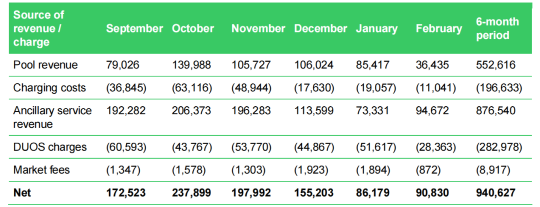 在運營的第二年,頻率調(diào)節(jié)收入與運營第一年相比有所下降,2020 年 7 月至 2021 年 2 月期間 FCAS 收入平均每月約 15 萬澳元,而 2019 年 7 月至 2020 年 2 月期間每月平均收入約 50 萬澳元。