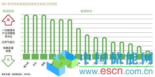 調(diào)查顯示,由于資源有限且難以與其他國(guó)家進(jìn)行電力聯(lián)網(wǎng),日本和韓國(guó)面臨著最大的能源安全性挑戰(zhàn)(見(jiàn)圖6)。中國(guó)在電力能源安全性方面占據(jù)相對(duì)較強(qiáng)的位置,這是由于中國(guó)煤炭?jī)?chǔ)量豐富、各地區(qū)間的聯(lián)網(wǎng)也在不斷增強(qiáng)。