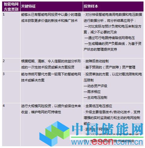 不過(guò),雖然智能電網(wǎng)的潛力理論上不容質(zhì)疑,但如何推進(jìn)實(shí)施卻需要更加務(wù)實(shí)的引導(dǎo)。調(diào)查根據(jù)風(fēng)險(xiǎn)和機(jī)遇等級(jí),將智能電網(wǎng)機(jī)遇格局細(xì)分為不同的投資類型。同時(shí),這樣的細(xì)分框架還具有四個(gè)決策等級(jí),以體現(xiàn)不斷增加的不確定性和依賴性水平,并進(jìn)行風(fēng)險(xiǎn)投資(見(jiàn)表1)。