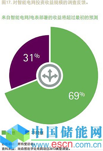 雖然面對(duì)不同決策風(fēng)險(xiǎn),但對(duì)智能電網(wǎng)投資收益的潛在前景,大多數(shù)受訪高管則持相當(dāng)樂(lè)觀的態(tài)度,他們相信最終收益規(guī)模將超出最初的預(yù)期(見(jiàn)圖17)。同時(shí),近三分之一的受訪高管期望智能電網(wǎng)解決方案在2030年前得到普遍應(yīng)用。