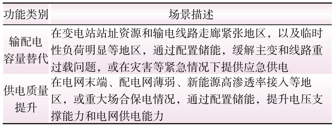表1 電網(wǎng)功能替代性儲能應用場景界定