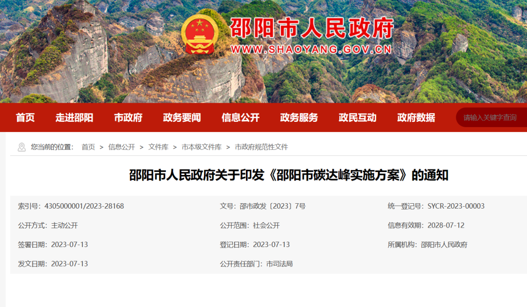現(xiàn)將《邵陽市碳達峰實施方案》印發(fā)給你們,請認真貫徹落實。