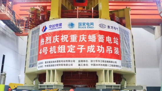 中國(guó)儲(chǔ)能網(wǎng)訊:8月31日,由水電八局承建的西南地區(qū)最大抽水蓄能電站——重慶蟠龍抽水蓄能電站最后一臺(tái)(4#)機(jī)組定子順利完成吊裝,至此,電站所有機(jī)組定子均“落座”成功。