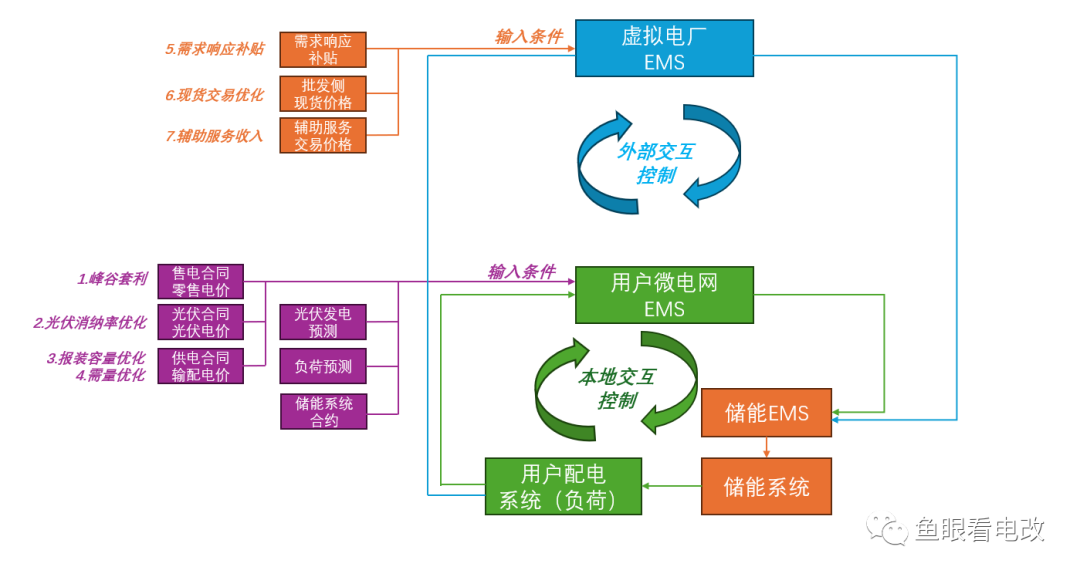 對儲(chǔ)能系統(tǒng)的EMS提出了更高的要求,不僅要實(shí)現(xiàn)本地的控制策略,還要疊加一層外部交互的策略,并且這兩層策略之間還需要耦合優(yōu)化,所以需要實(shí)現(xiàn)虛擬電廠EMS、用戶微電網(wǎng)EMS、儲(chǔ)能EMS的雙層耦合,儲(chǔ)能EMS自己無法解決外部性控制的需求。
