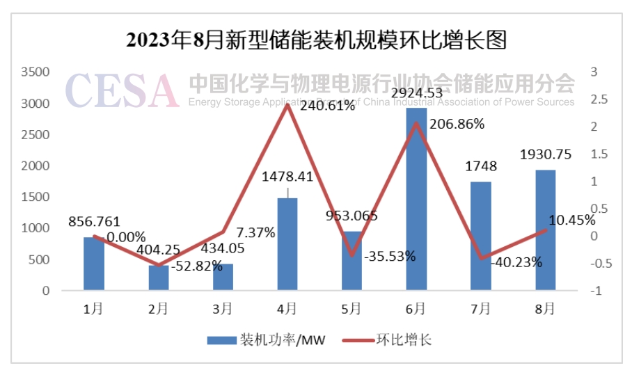 圖1 2023年8月新型儲能裝機(jī)規(guī)模環(huán)比增長圖
