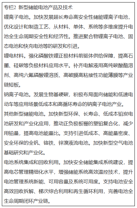 以大規(guī)模儲能、柔性并網(wǎng)、光儲一體化等新型儲能電池下游重點應用產(chǎn)業(yè)需求為導向,推進儲能電池產(chǎn)業(yè)發(fā)展。提高鋰、鎳、鈷、鉑、錳、生物基硬碳等產(chǎn)業(yè)資源保障能力,加快推進符合國家標準的高性能鋰離子電池、固態(tài)電池、鈉離子電池、燃料電池等新型電池產(chǎn)業(yè)化落地。加強長壽命高安全性電池體系、大規(guī)模大容量高效儲能、交通工具移動儲能等關鍵技術的研究。建立完善鋰電全生命周期溯源管理體系。積極推廣基于優(yōu)勢互補功率型和能量型電化學儲能技術的混合儲能系統(tǒng)。