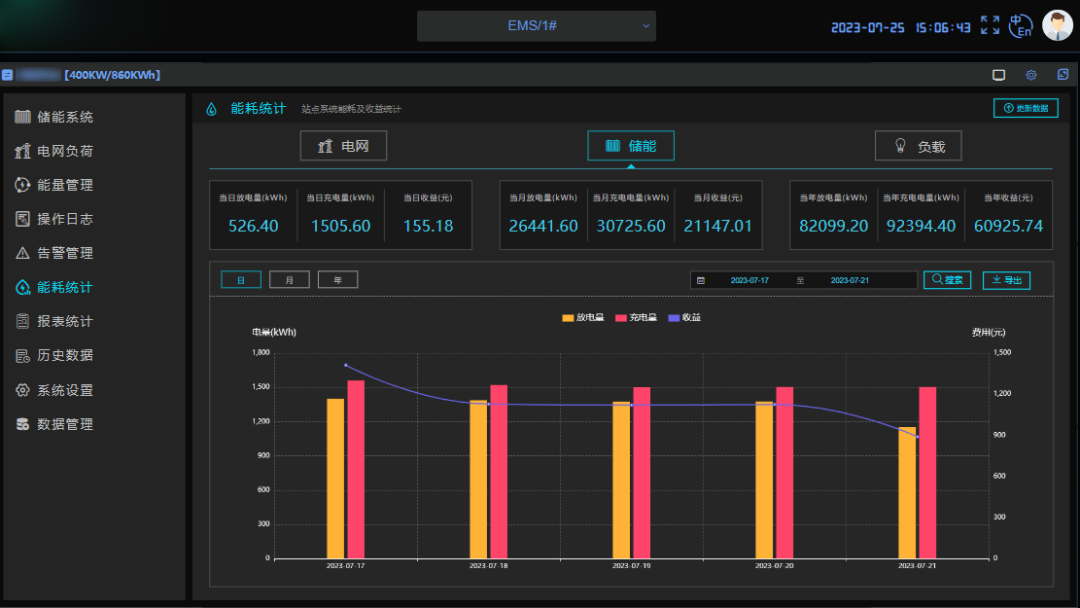 項(xiàng)目以浙江省的分時(shí)電價(jià)機(jī)制為設(shè)計(jì)依據(jù),采取每日兩充兩放的運(yùn)行模式。根據(jù)頁(yè)面統(tǒng)計(jì),在短短78天的運(yùn)行時(shí)間里,項(xiàng)目中4臺(tái)一體機(jī)為廠區(qū)節(jié)約了6萬(wàn)+的電費(fèi),預(yù)計(jì)整個(gè)項(xiàng)目全年可節(jié)約50萬(wàn)電費(fèi)。