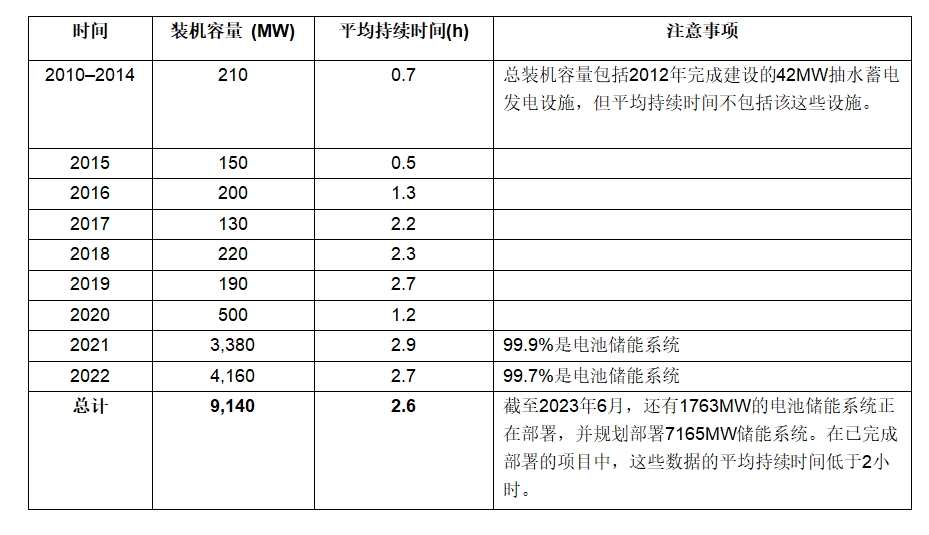 表1 美國從2010年到2022年部署的儲能系統(tǒng)裝機容量