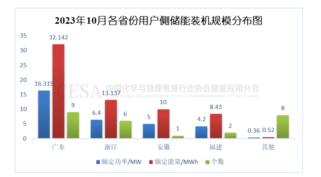 圖2-3-1 2023年10月各省份用戶(hù)側(cè)新型儲(chǔ)能裝機(jī)規(guī)模分布圖