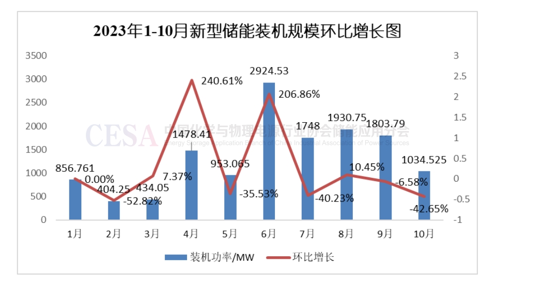 圖1 2023年10月新型儲(chǔ)能裝機(jī)規(guī)模環(huán)比增長(zhǎng)圖