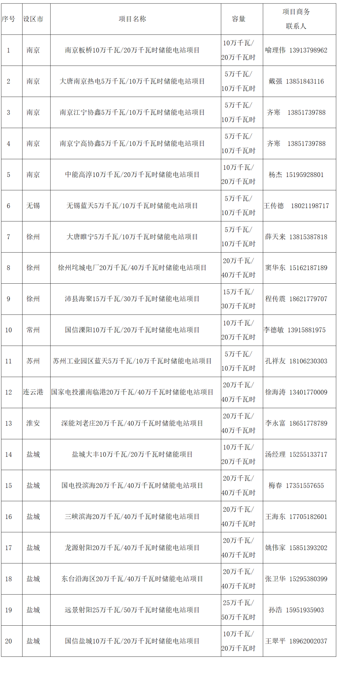 以下為江蘇省已納規(guī)獨(dú)立新型儲能項目簡要情況: