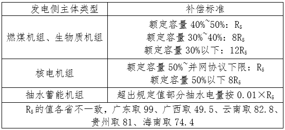 表1 南方區(qū)域電網(wǎng)不同類型機(jī)組參與深度調(diào)峰補(bǔ)償標(biāo)準(zhǔn)