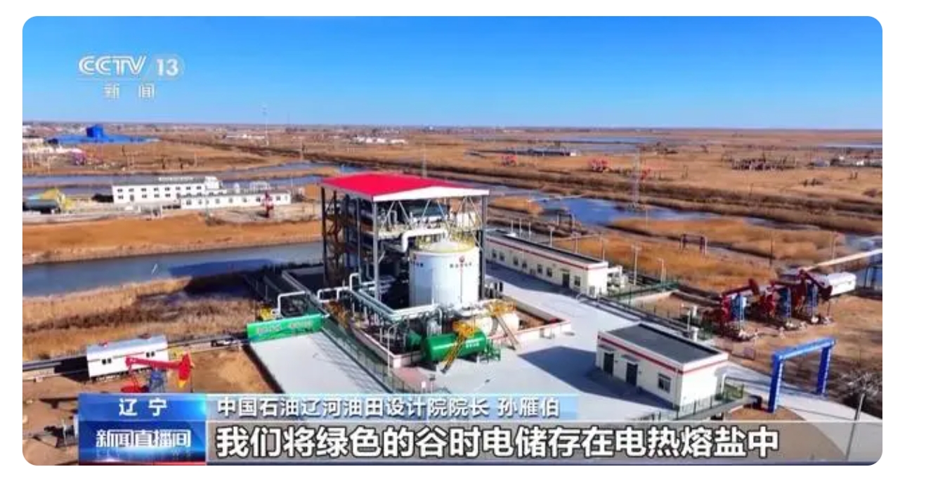 世界首座電熱熔鹽儲(chǔ)能注汽試驗(yàn)站,近日在遼河油田竣工投產(chǎn)。該試驗(yàn)站利用電網(wǎng)負(fù)荷低谷時(shí)的電加熱熔鹽,把電能轉(zhuǎn)化為熱能存儲(chǔ)在液態(tài)熔鹽內(nèi),再通過(guò)高溫熔鹽與水連續(xù)換熱產(chǎn)生蒸汽,為周邊的稠油熱采井提供蒸汽。該站儲(chǔ)能規(guī)模為15兆瓦,每年可生產(chǎn)蒸汽4.8萬(wàn)噸,替代天然氣313萬(wàn)立方米,減排二氧化碳6768噸。