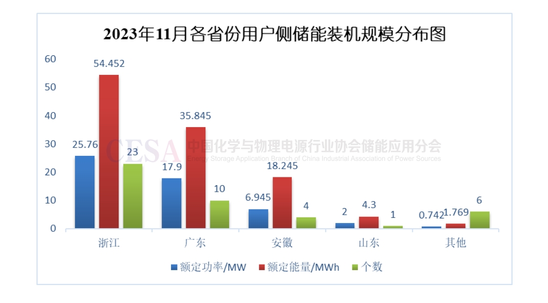 11月用戶側新增項目個數(shù)大幅增長,主要集中在浙江、廣東。
