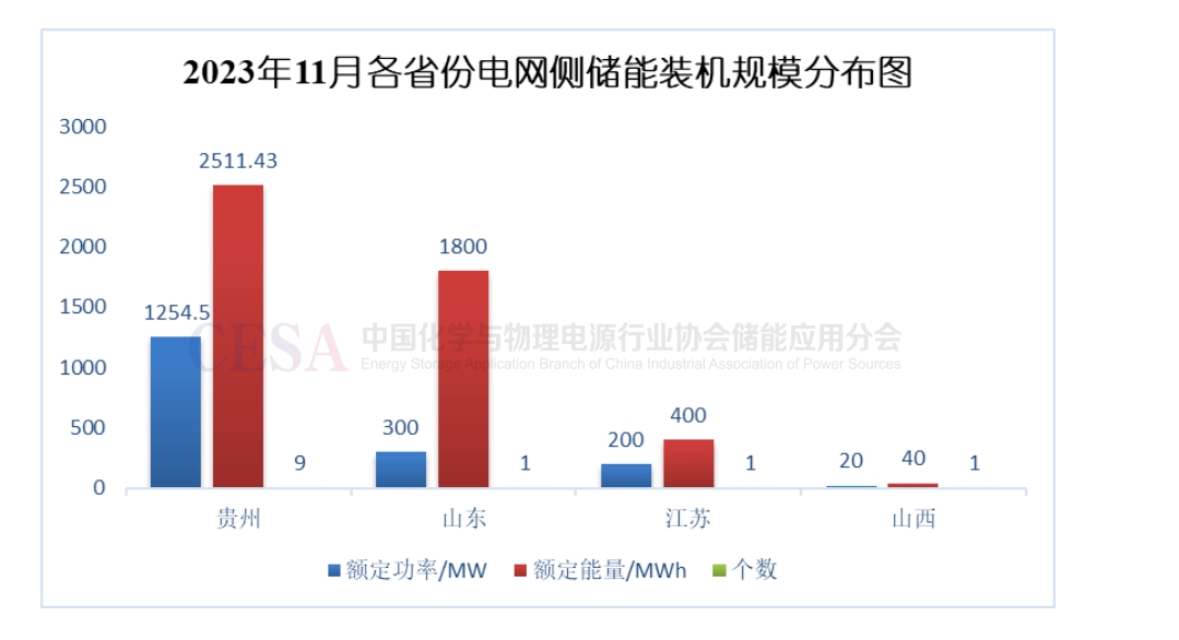 11月新增電網側項目較多,主要集中在貴州省。