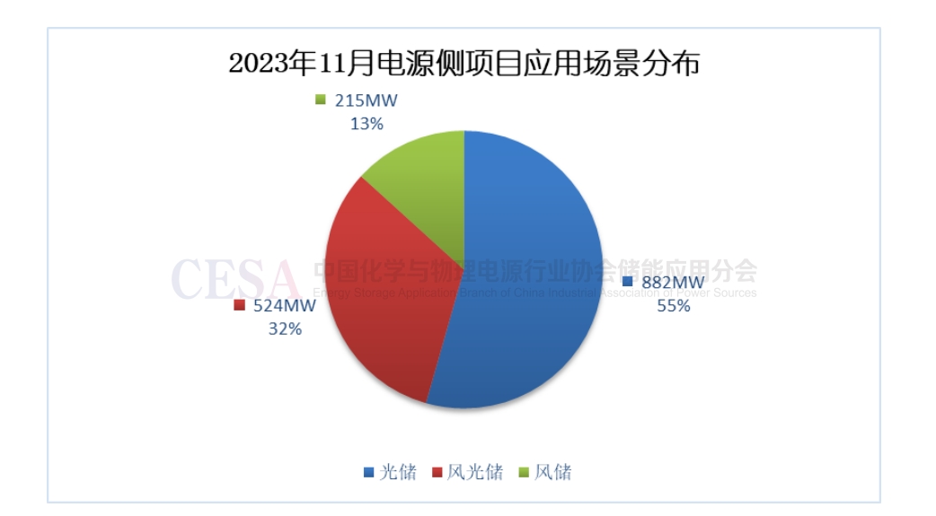 11月電源側新能源配儲項目為主,光伏配儲占比超過一半。