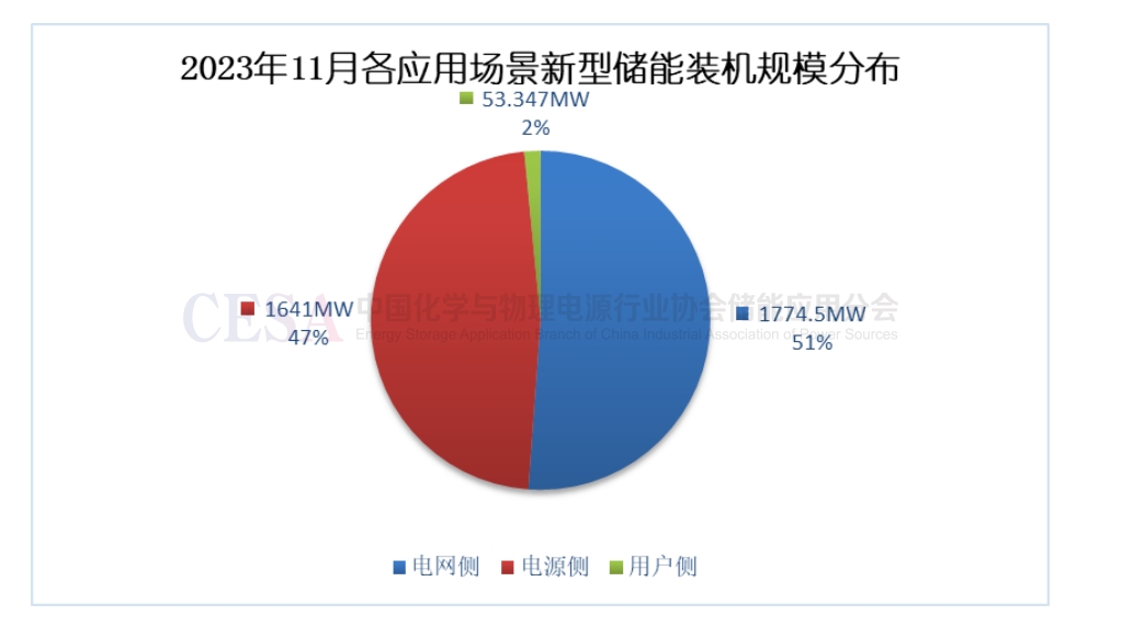 圖2-1 2023年11月各應用場景新型儲能裝機規(guī)模分布圖