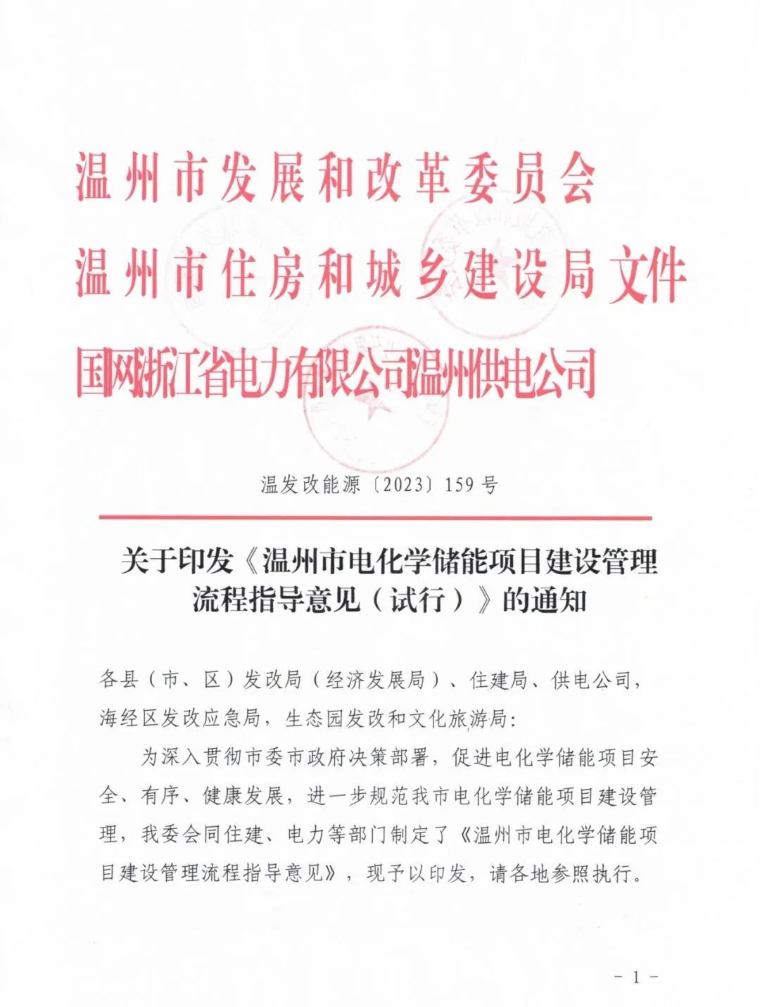 中國(guó)儲(chǔ)能網(wǎng)訊:12月27日,溫州市發(fā)展和改革委員會(huì)、溫州市住房和城鄉(xiāng)建設(shè)局、國(guó)網(wǎng)浙江省電力有限公司溫州供電公司等多部門(mén)聯(lián)合印發(fā)《溫州市電化學(xué)儲(chǔ)能項(xiàng)目建設(shè)管理流程指導(dǎo)意見(jiàn)(試行)》(以下簡(jiǎn)稱(chēng)“指導(dǎo)意見(jiàn)”)。