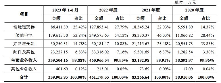 從收入構(gòu)成情況來看,2021年起,儲能逆變器和儲能電池兩項業(yè)務(wù)逐漸成為艾羅能源營收的主要來源,2022年和2023年上半年,兩項業(yè)務(wù)在營收中的占比達83.91%和78.26%。