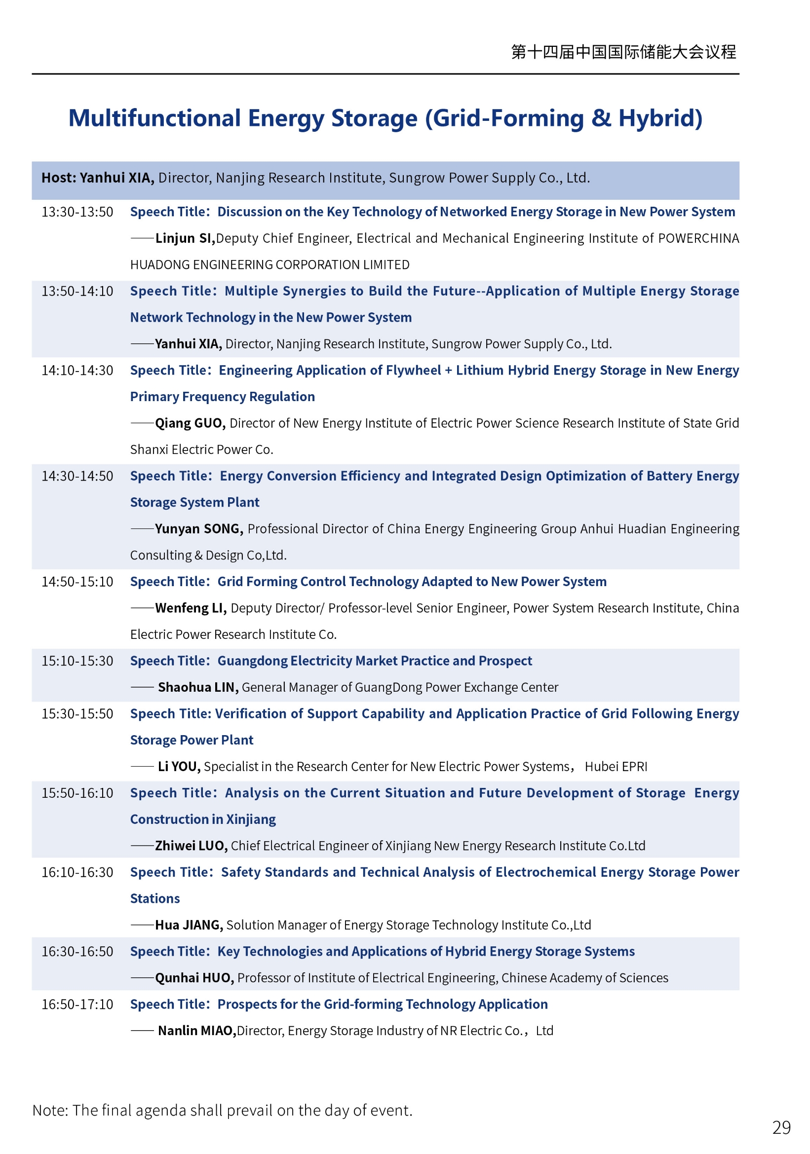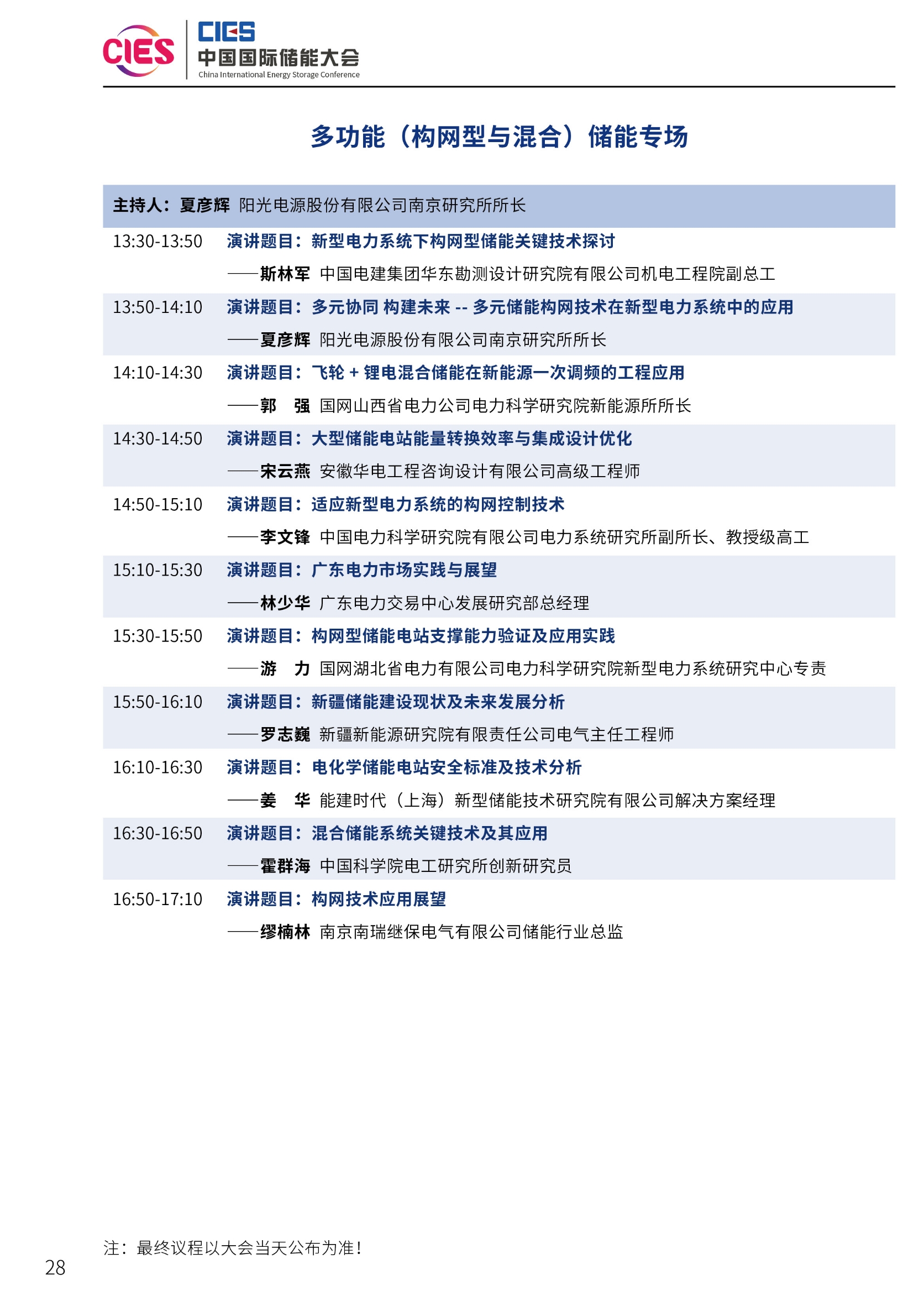 第十四屆中國國際儲能大會——多功能 (構網(wǎng)型與混合) 儲能專場議程發(fā)布