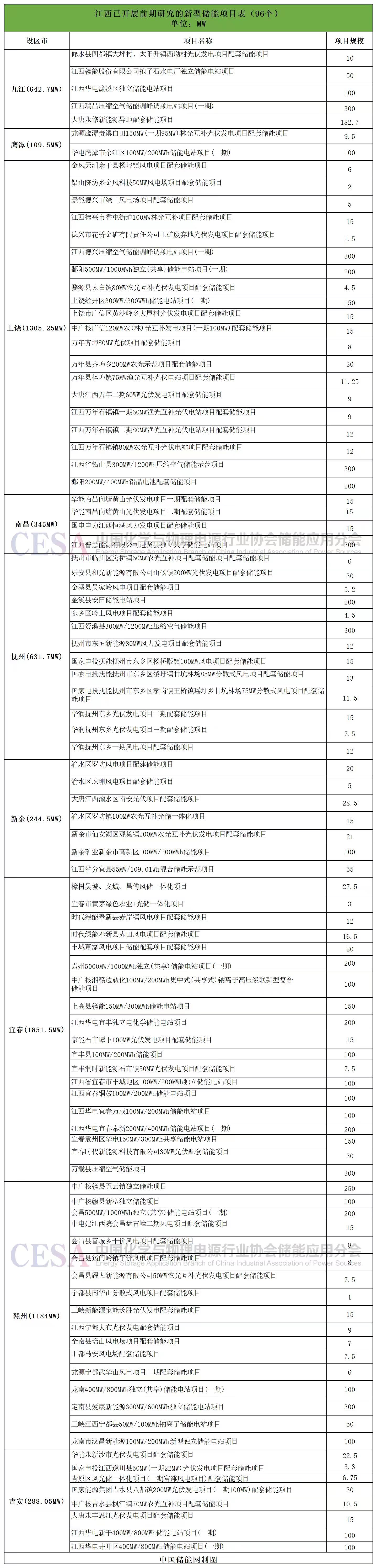 中國(guó)儲(chǔ)能網(wǎng)訊:1月9日,江西省能源局印發(fā)《江西省新型儲(chǔ)能發(fā)展規(guī)劃(2024-2030年)》(以下簡(jiǎn)稱《發(fā)展規(guī)劃》),《規(guī)劃》明確了江西省到2025年、2030年、2035年分階段的儲(chǔ)能發(fā)展目標(biāo),并且公開(kāi)了96個(gè)已開(kāi)展前期研究的新型儲(chǔ)能項(xiàng)目,項(xiàng)目總規(guī)模6.6GW/6.6GWh。