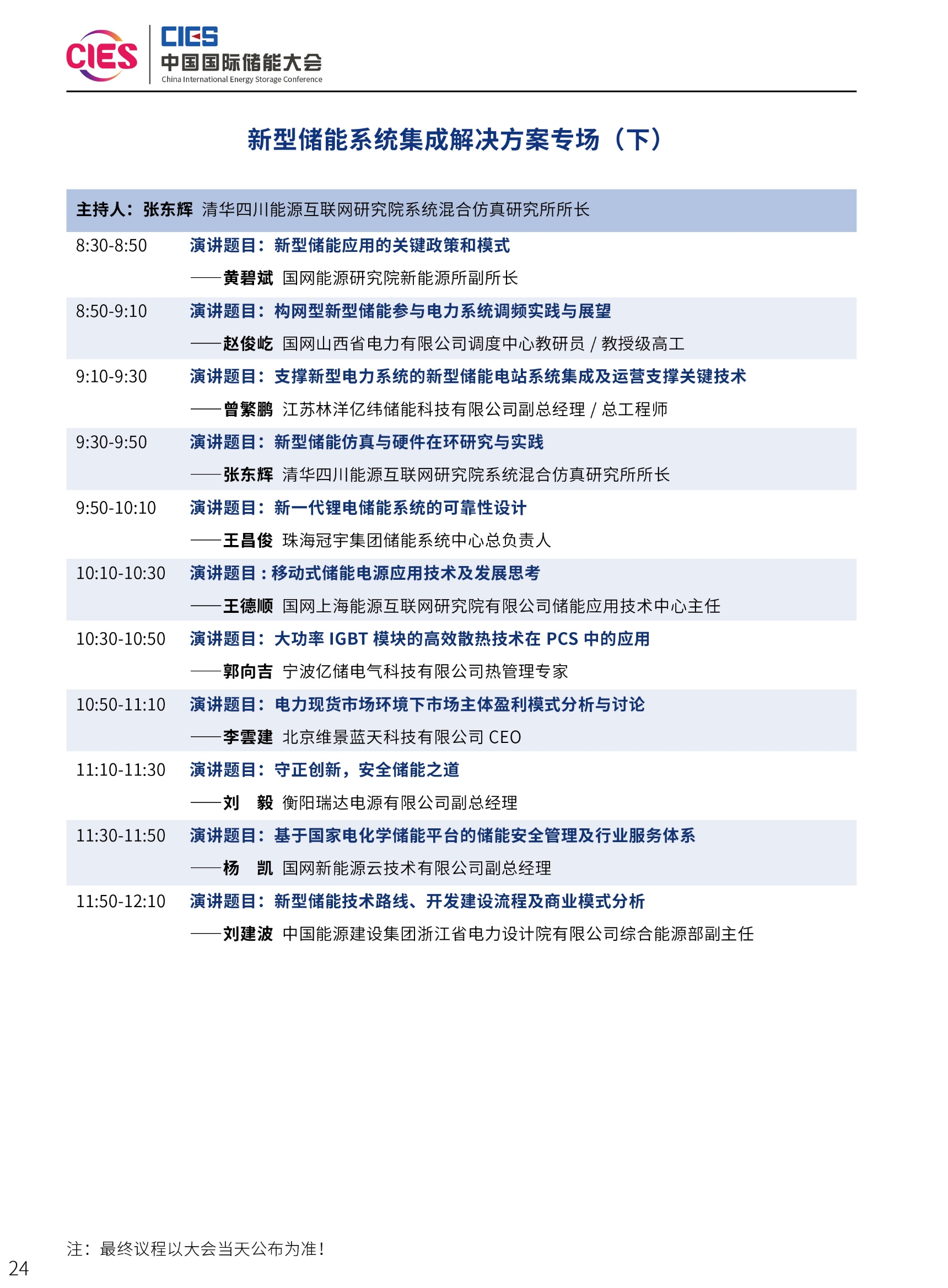 第十四屆中國國際儲能大會——新型儲能系統(tǒng)集成解決方案專場 (下)議程發(fā)布