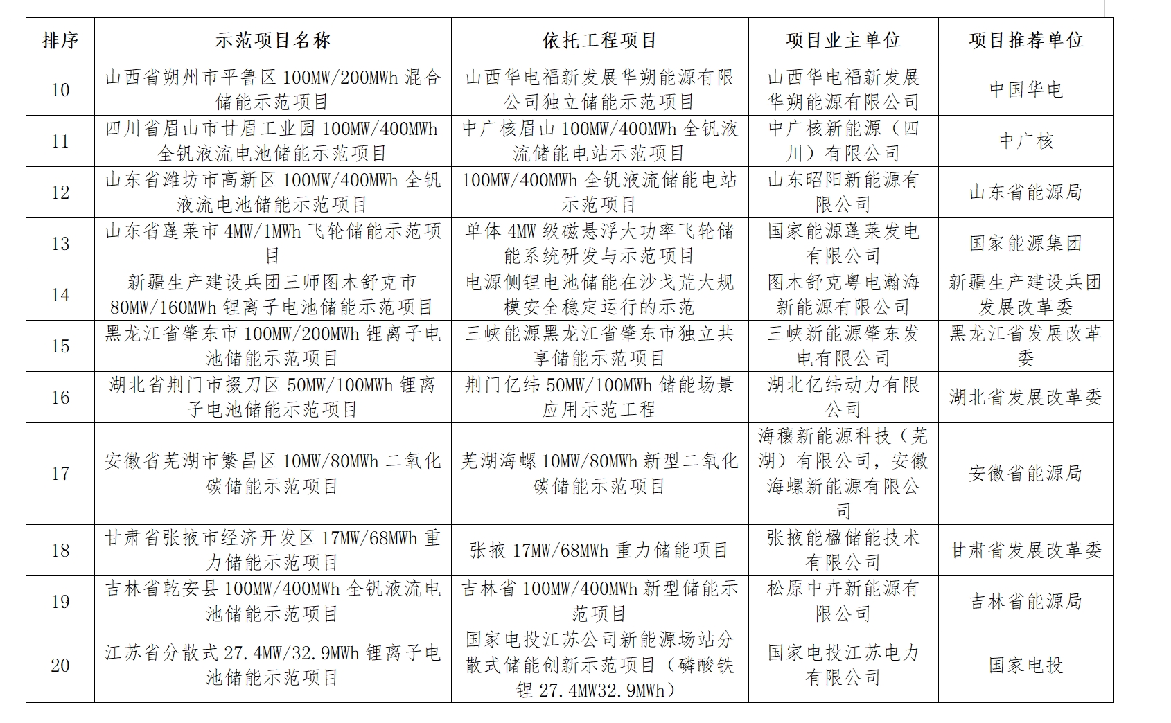 一、經(jīng)項目單位申報,有關(guān)省級能源主管部門和中央企業(yè)匯總推薦,國家能源局組織專家評審,并公示征求各方面意見,決定將“山東省肥城市300MW/1800MWh壓縮空氣儲能示范項目”等56個項目列為新型儲能試點示范項目。