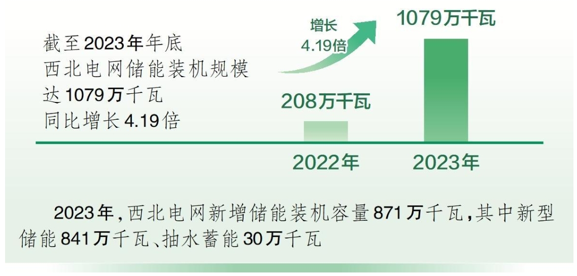中國(guó)儲(chǔ)能網(wǎng)訊:1月25日從國(guó)家電網(wǎng)有限公司西北分部獲悉,截至2023年年底,西北電網(wǎng)儲(chǔ)能裝機(jī)規(guī)模達(dá)1079萬千瓦,較2022年年底增長(zhǎng)了4.19倍。2023年,西北電網(wǎng)新增儲(chǔ)能裝機(jī)容量871萬千瓦,其中新型儲(chǔ)能841萬千瓦、抽水蓄能30萬千瓦。調(diào)節(jié)性電源投產(chǎn)實(shí)現(xiàn)跨越式發(fā)展,為電力保供及新能源電量消納提供了堅(jiān)實(shí)保障。