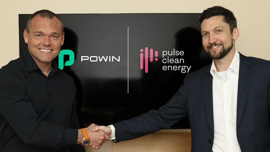 Powin公司總裁Anthony Carroll(左)和Pulse Clean Energy公司首席執(zhí)行官Trevor Wills在倫敦舉辦的2024年儲能峰會上達(dá)成交易