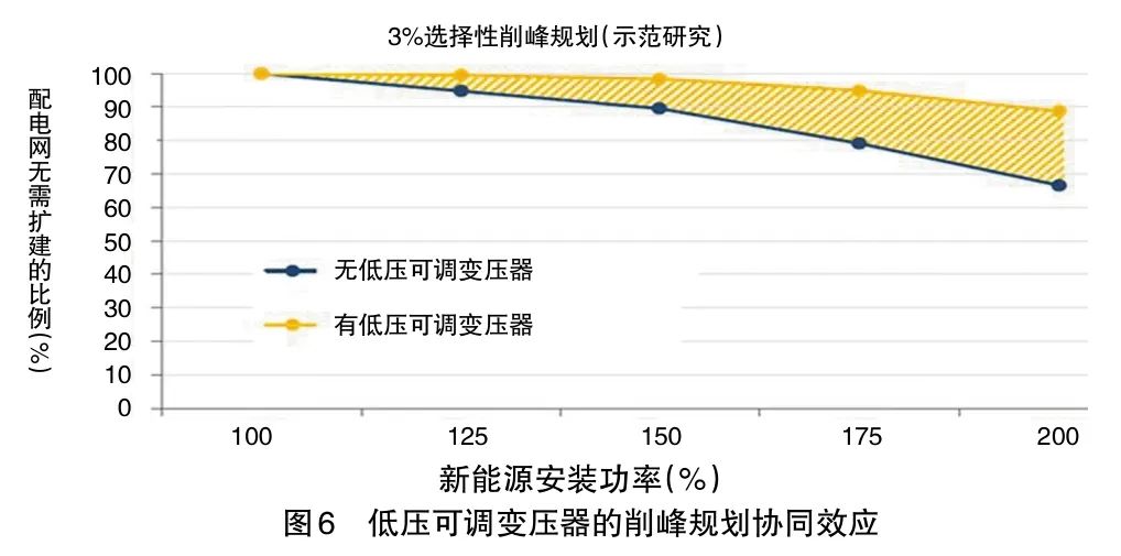 然而,由于光伏在低壓電網(wǎng)中主要引起電壓問題,因此有效地利用低壓可調(diào)配電變壓器以提高削峰規(guī)劃的協(xié)同效果,顯得尤為關(guān)鍵(見圖6)。