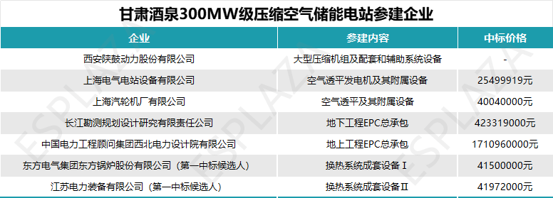 當前,中能建數(shù)科湖北應城300MW壓縮空氣儲能電站示范項目、甘肅酒泉300MW壓縮空氣儲能電站示范工程、山東泰安350MW壓縮空氣儲能創(chuàng)新示范項目等三大項目均在建設中。壓縮空氣儲能項目的建設需要多方的共同參與,ESPLAZA長時儲能網(wǎng)統(tǒng)計了目前參與這三大項目建設的相關公司。