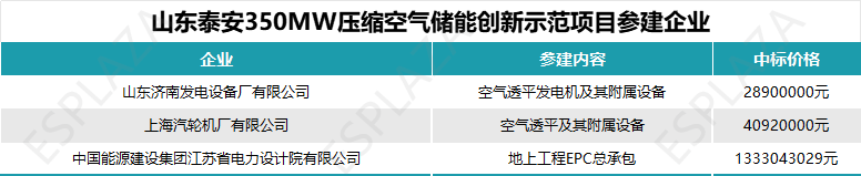 2023年9月,山東濟南發(fā)電設備廠有限公司以28900000元的投標報價,中標泰安項目“空氣透平發(fā)電機及其附屬設備采購”項目。