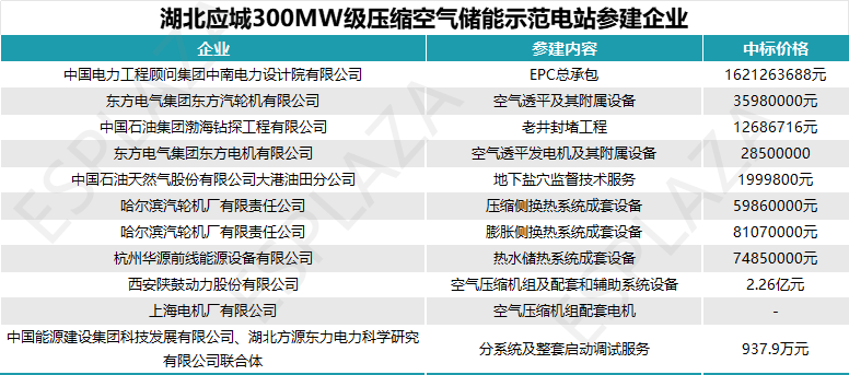 湖北應城300MW壓縮空氣儲能電站示范項目投資單位為中能建數(shù)字科技集團有限公司和國網(wǎng)湖北綜合能源服務有限公司,建設單位為湖北楚韻儲能科技有限責任公司,總承包單位為中南院。