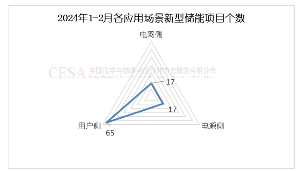 圖2-2 2024年1-2月各應用場景新型儲能項目個數(shù)分布圖