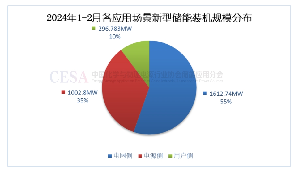 圖2-1 2024年1-2月各應用場景新型儲能裝機規(guī)模分布圖