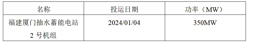2024年1-2月共投運抽水蓄能項目1個——國網(wǎng)新源福建廈門抽水蓄能電站2號機組。