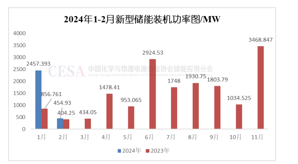 圖1 2024年1-2月新型儲能裝機規(guī)模對比圖