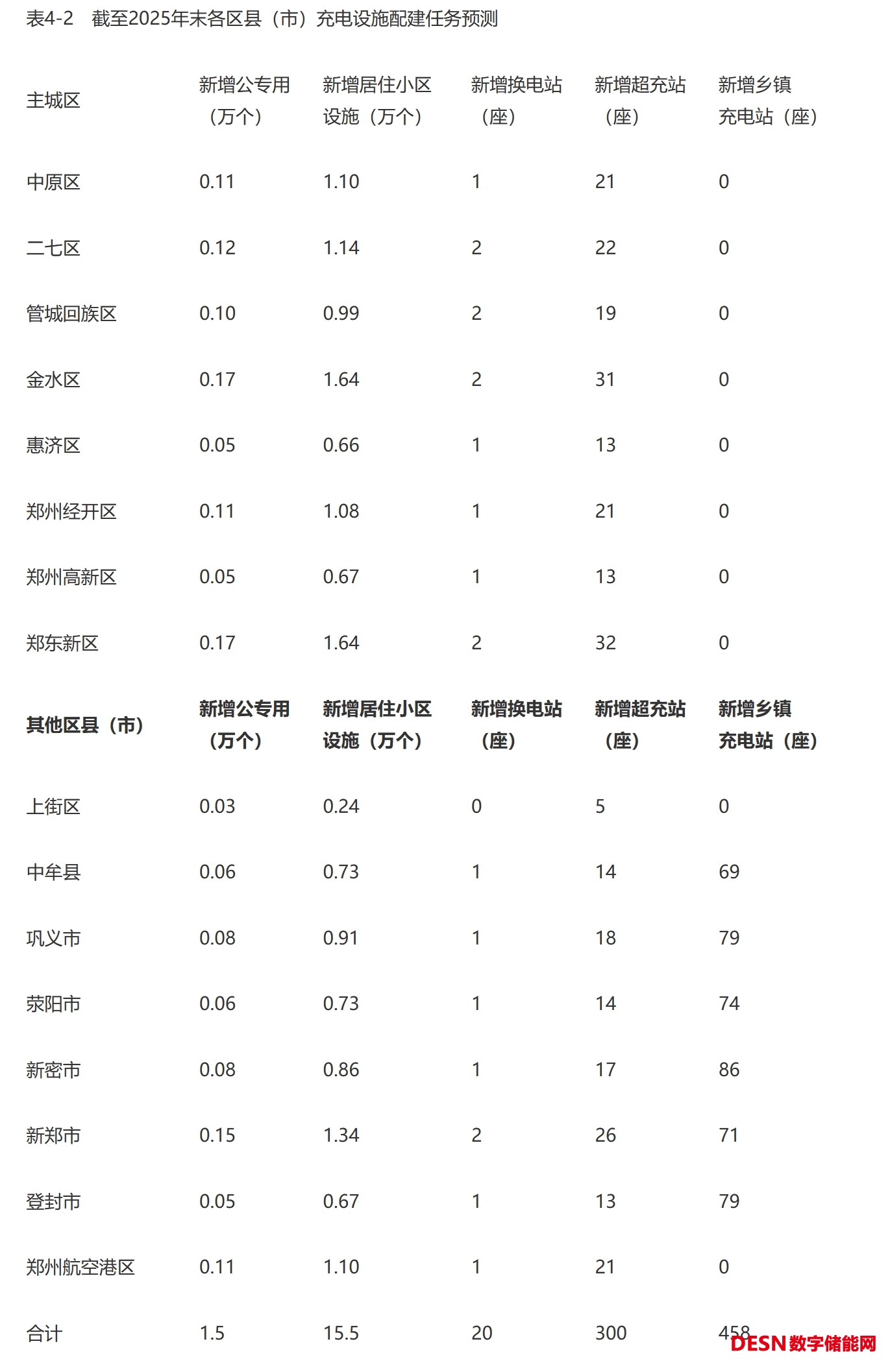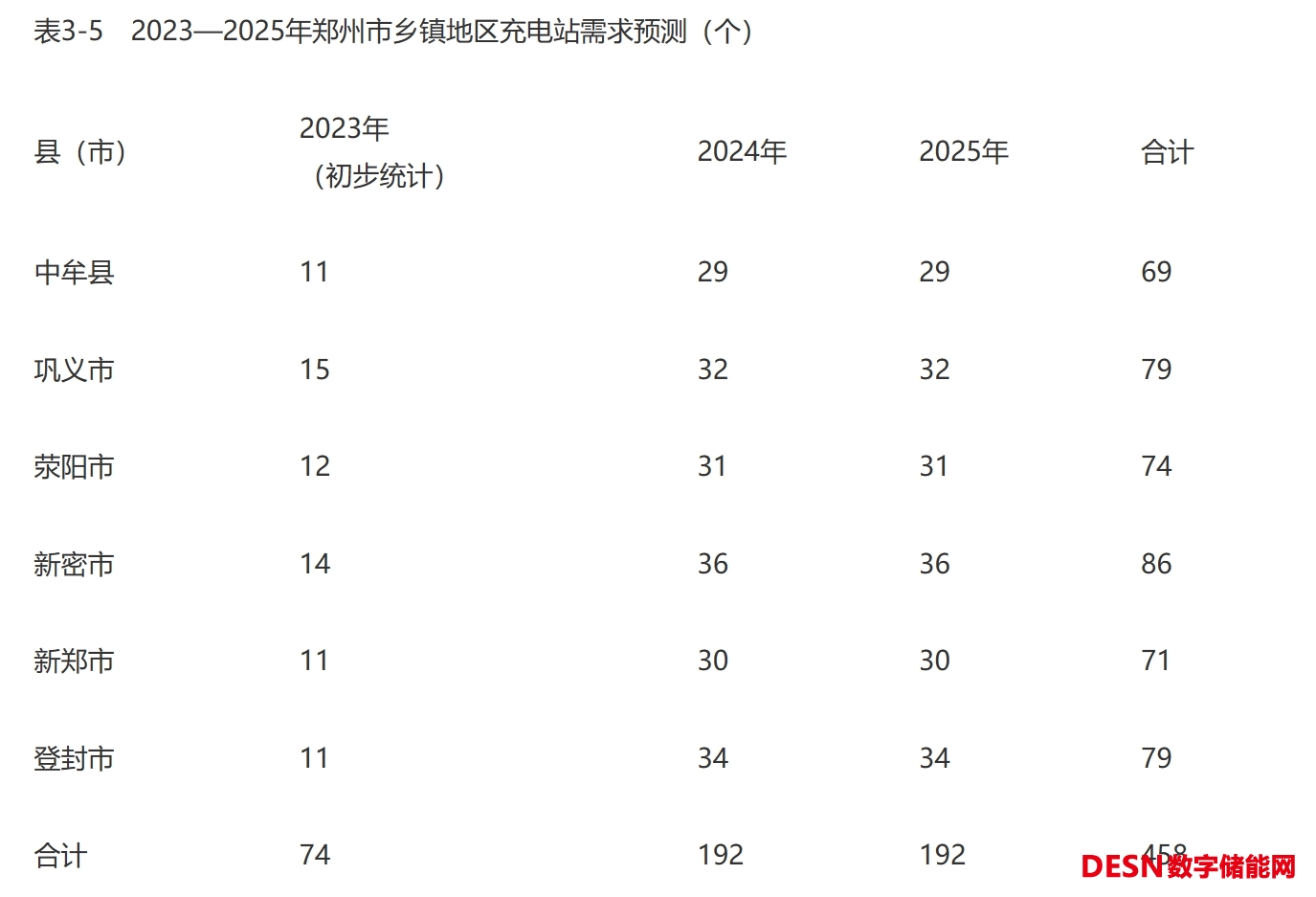 未來,鄉(xiāng)鎮(zhèn)地區(qū)將是新能源汽車增長的熱點區(qū)域,應(yīng)加速配建公用充電設(shè)施,交通便利的場所以快充為主慢充為輔,靠近居住小區(qū)、自然村的場所以慢充為主快充為輔。鄭州市周邊區(qū)縣(市)現(xiàn)有22個街道、64個鎮(zhèn)、10個鄉(xiāng)、273個社區(qū)、1654個自然村,為了激發(fā)農(nóng)村地區(qū)新能源汽車消費潛力,2023年在每個鄉(xiāng)鎮(zhèn)至少建設(shè)1座公用充電站,2024—2025年加大建設(shè)力度,每年按照社區(qū)和自然村總量的10%配建公共充電站,單站配建充電設(shè)施不少于10個。2023—2025年,在鄉(xiāng)鎮(zhèn)地區(qū)將新增458個充電站、4580個充電設(shè)施。