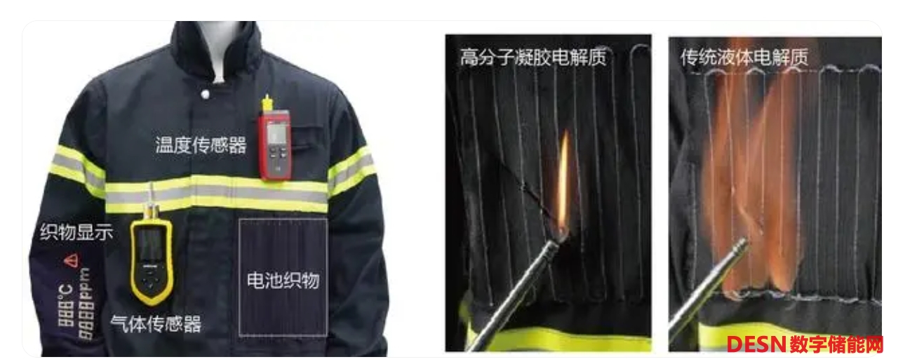 團(tuán)隊(duì)還進(jìn)一步制作了多功能消防服,在高溫火場的模擬環(huán)境中,電池織物在即使被磨損剪斷后仍沒有發(fā)生著火、爆炸等安全事故,并穩(wěn)定地為對講機(jī)、傳感器等消防員隨身設(shè)備供電。