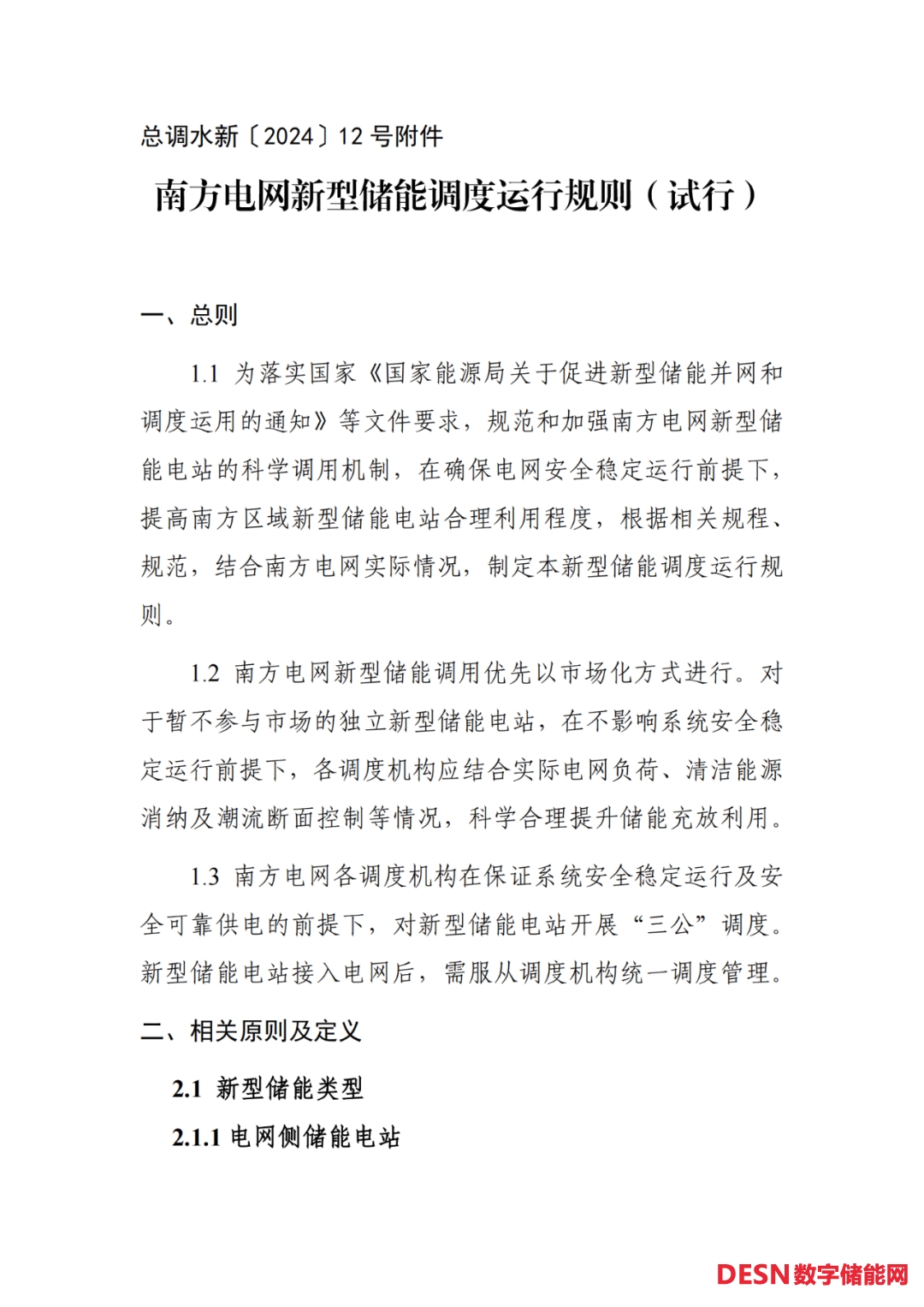 南方電網(wǎng)新型儲能調(diào)度運行規(guī)則(試行)