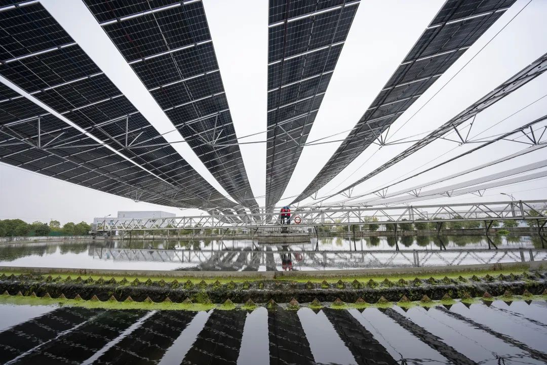 供電員工對(duì)柔性支架光伏發(fā)電設(shè)備進(jìn)行巡查