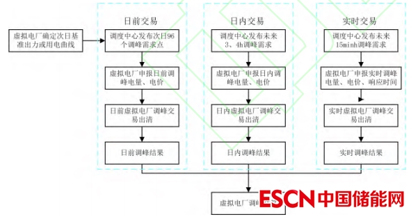(4)交易執(zhí)行。調(diào)度中心完成次日虛擬電廠的預(yù)調(diào)用計劃后,虛擬電廠根據(jù)計劃確定次日各類聚合資源的調(diào)用容量,形成調(diào)用方案。次日,調(diào)度中心對虛擬電廠進行實時調(diào)用。、