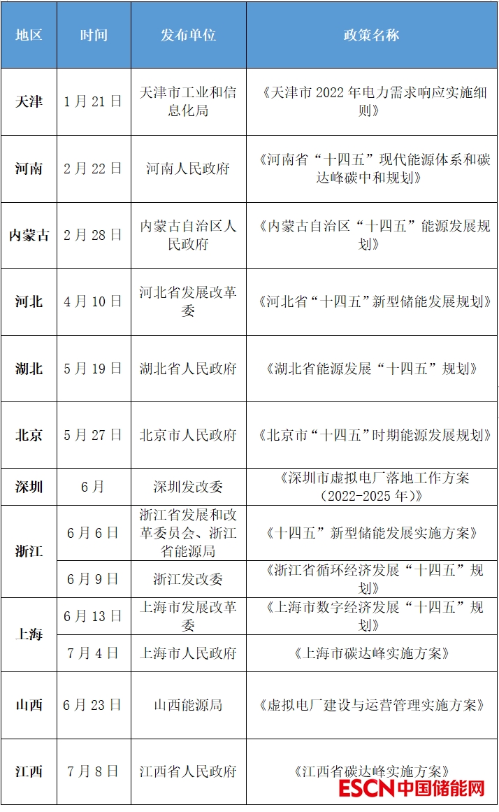 今年以來(lái),北京、深圳、山西等近十余個(gè)省份相繼出臺(tái)了相關(guān)政策,支持虛擬電廠(chǎng)的發(fā)展。其中山西省能源局在今年6月發(fā)布的《虛擬電廠(chǎng)建設(shè)與運(yùn)營(yíng)管理實(shí)施方案》為目前國(guó)內(nèi)首份省級(jí)虛擬電廠(chǎng)運(yùn)營(yíng)管理文件,文件中明確到2025年,深圳將建成具備100萬(wàn)千瓦級(jí)可調(diào)能力的虛擬電廠(chǎng)。