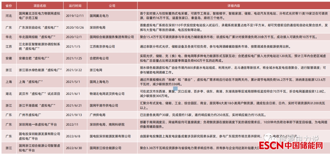 虛擬電廠各地項(xiàng)目匯總