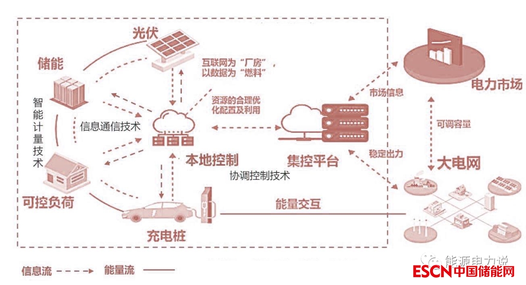 若規(guī)?;苯硬⑷腚娋W(wǎng)發(fā)電,將會(huì)對電網(wǎng)造成巨大沖擊,威脅電力系統(tǒng)安全以及供電的穩(wěn)定性。另外,由于小型分布式新能源發(fā)電設(shè)施、儲能設(shè)施、可控制用電設(shè)備、電動(dòng)汽車等的持續(xù)發(fā)展普及,在用電側(cè),很多電力用戶也從單一的消費(fèi)者轉(zhuǎn)變?yōu)榛旌闲螒B(tài)的產(chǎn)銷者,并且各類激增的大功率用電設(shè)備(如充電樁)“吃”起電來,也是讓電網(wǎng)直呼壓力山大,顯然不能任由其“胃口大開”一哄而上。因而,新的發(fā)用電勢態(tài)下,“虛擬電廠”應(yīng)運(yùn)而生。