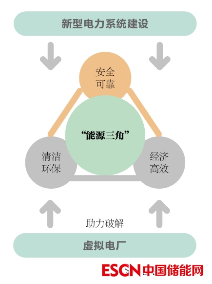 新型電力系統(tǒng)建設(shè)需要面對“能源三角”難題,即同時實(shí)現(xiàn)安全、環(huán)保和經(jīng)濟(jì),虛擬電廠有望為此提供重要助力。